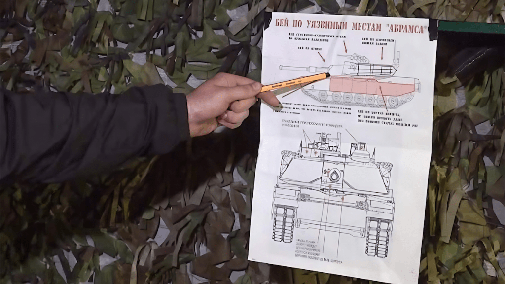The Russian military has published and disseminated numerous handouts to Russian troops on how to engage an M1A1 Abrams. There is a long history of armies publishing guides on how to engage specific targets with both sides in the current conflict disseminating threat recognition and vulnerability guides. One early Ukraine War example of this was the illustrations published by the Ukrainian government illustrating where to strike various vehicles with molotov cocktails.