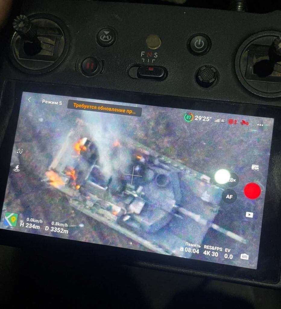 The tank was reportedly hit by a pair of FPV drones, one which achieved a mobility kill, which caused the crew to bail out, and a second which detonated stored ammunition. Both FPV drones attacked the M1A1SA from the rear – in line with the handout’s advice to “hit the ammunition in the rear bottom of the turret”. The drone reconnaissance unit commander said that they had: “looked at the structure of the tank in advance, where it would be best to hit it.” Interviews with members of the Russian drone unit were also published by major Russian news outlets including RIA, Zvezda and Izvestia.