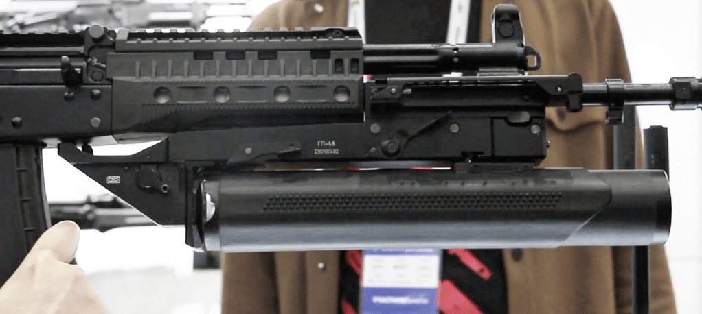 The GP-46 was unveiled by Kalasknikov Concern at the ‘Army-2024’ exposition in August. Unlike other Russian underbarrel grenade launchers the GP-46 is chambered in the Western 40x46mm, the low velocity grenades used in launchers like the M203, and M320. Despite its first public appearance in 2024, the visible serial number indicates that the launcher on display was actually made in 2023. It was reportedly developed in 2023-24 by a design team led by Kalashnikov’s chief small arms designer Sergei Vladimirovich Urzhumtsev.