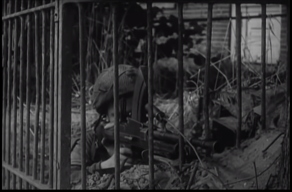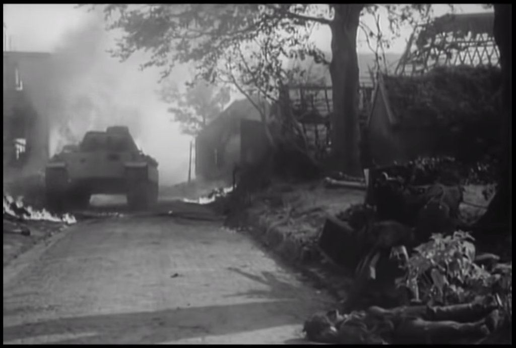 Perhaps the most important and realistic appearance was its first, in the fascinating 1946 film ‘Theirs Is The Glory‘. It’s a unique film that was filmed entirely on location with from veterans of the battle making up most of the cast and help from the British Army’s Army Film and Photographic Unit.