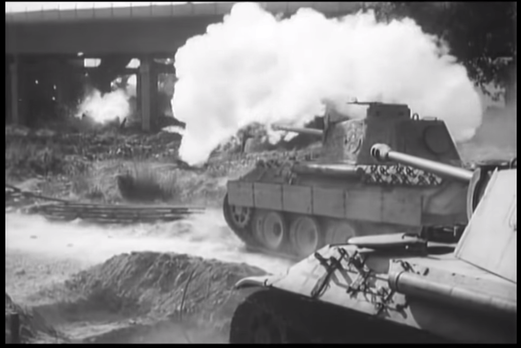 The scene itself is actually quite authentic. The PIAT gunner misses, and that isn’t too surprising as despite being a platoon weapon not everyone had a lot of training on them. While the PIAT misses twice – this is because the gunner was firing from an elevated position. This makes judging the range and lead which should be given to an advancing tank all the more difficult. It is something we see in contemporary accounts, including in Arnhem Lift: Diary of a Glider Pilot, by Louis Hagen. Hagen describes firing a PIAT at a self-propelled gun (likely a StuG) from an attic during the fighting in Arnhem: “The direction was perfect, but it fell about twenty yards short.” Similarly, there are accounts from Home Army members fighting in Warsaw during the Uprising which describe exactly the same thing.