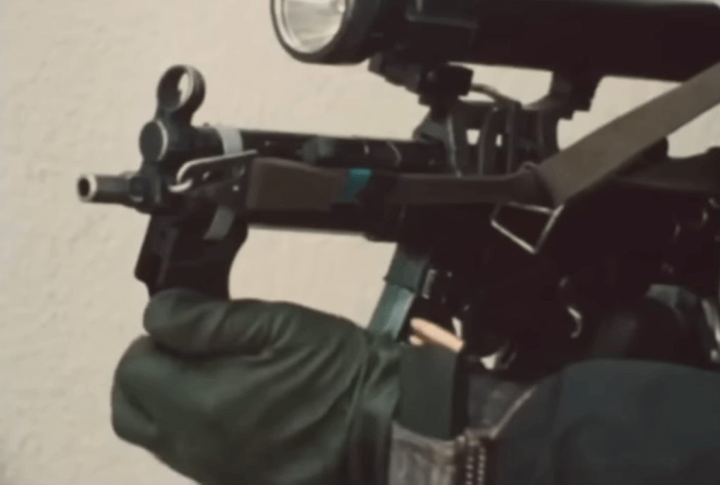 We get a good look at one of these in the British Army’s 1984 video about the SAS. We can see the magazine holder on the operator’s left wrist. Later in the film a trooper climbing through a window can also be clearly seen equipped with a Browning Hi-Power loaded with an extended magazine. The tradition continued with extended magazines also being regularly used with the later SIG P226s.