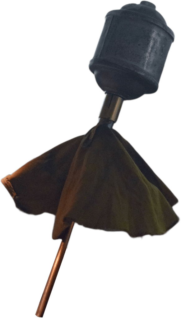 To use the grenade the firer would remove the wire fastening around the grenade to free the canvas vane. This would also allow access to the safety pin. The top plug could be undone and the detonator inserted. The rod was then slid down the muzzle of the user’s rifle. The safety pin could then be removed. A blank cartridge would be loaded into the rifle and when the trigger was pulled the was grenade launched by the gases from the cartridge pushing the rod out of the barrel. The No.44’s flight would be stabilised by the canvas skirt or vane.