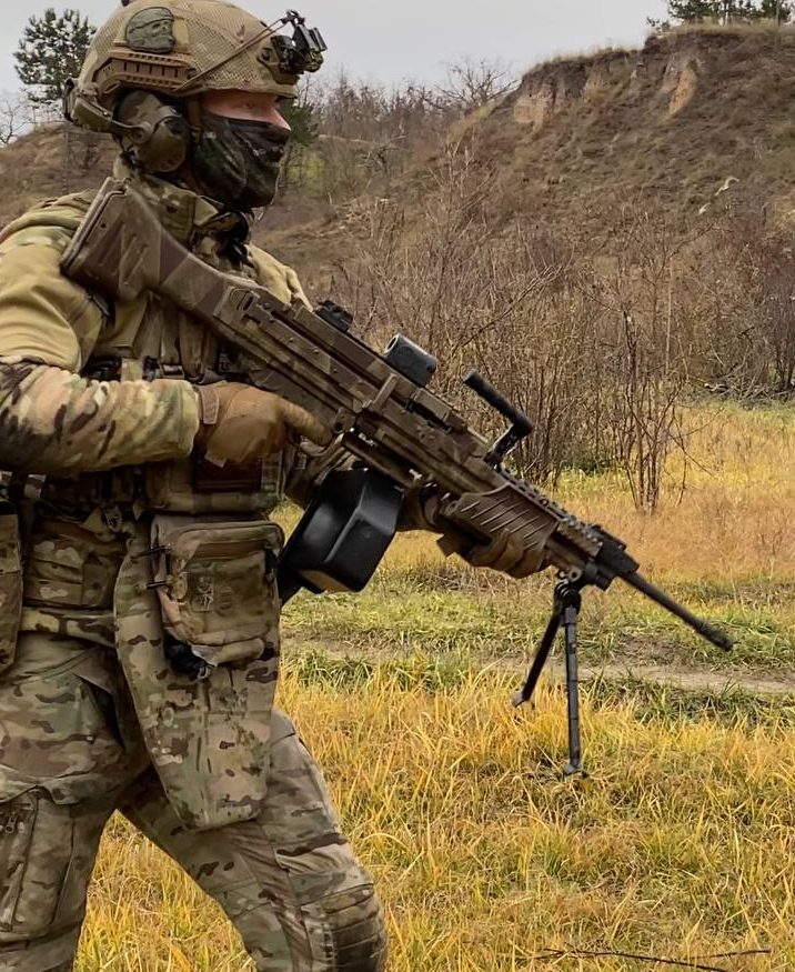In July 2024, a Ukrainian combatant, believed to be attached to the SSO’s 73rd Naval Special Operations Center, shared a photograph showing him carrying a SFP9 as well as a Daniel Defense carbine.