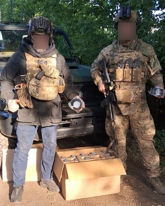 Another probable SFP9 can be seen in a photo, posted on 6 May, by a volunteer aid organisation, in the photo members of a HUR MO International Legion unit receive gas masks somewhere in the