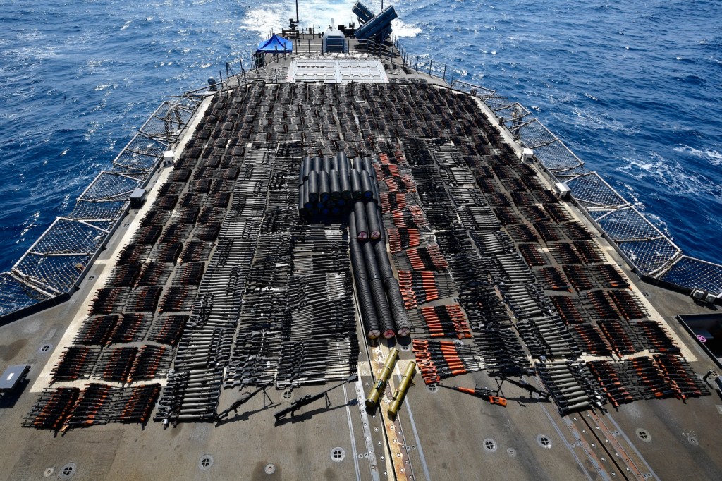 Thousands of illicit weapons interdicted by USS Monterey, May 2021 (U.S. Navy)