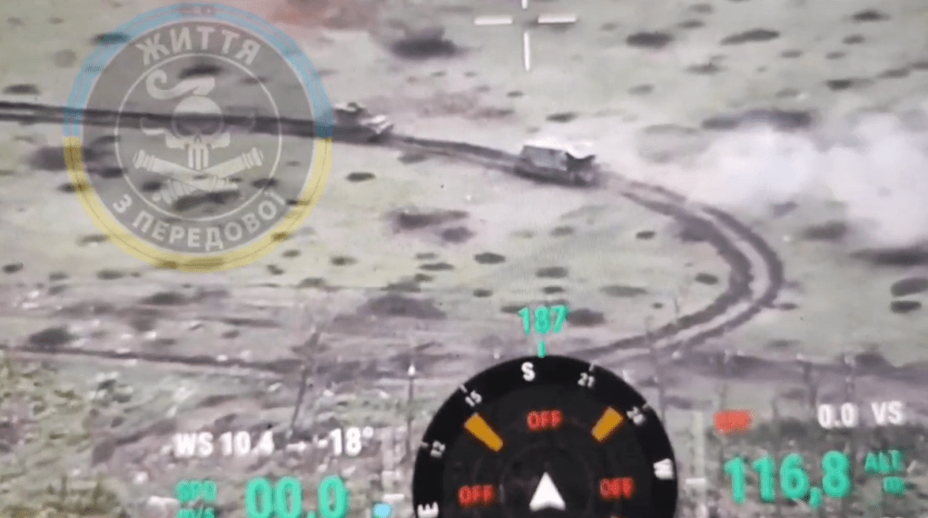 Ukraine’s Presidential Brigade shared some FPV footage of what may be another ‘Turtle Tank’ near Vuhledar. The resolution of the footage is low but the vehicle appears to have an EW module on top of its counter-FPV shell. Its unclear if the shell is solid s heet metal or if its is a mesh screen which covers the top part of the vehicle and has been shrouded in camouflage netting.