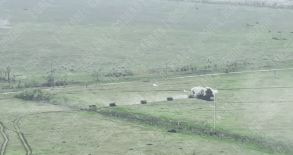 It emerged on 19 May that the ‘Scorpion’ showcased by Large Caliber Trouble three days earlier had apparently been successfully engaged. CyberBoroshno shared a short clip showing the vehicle being struck by FPV drones and set alight. CyberBoroshno suggested the vehicle was an ‘atypical MT-LB’ but it is likely the tank, which had had its gun removed, was a T-62M.