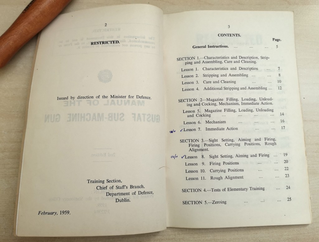 I’ve recently aimed to expand the TAB Reference Collection into Irish Defence Force material, this 1959 manual for the m/45 Carl Gustaf submachine gun joins an Irish manual for the FN FAL I acquired last year.