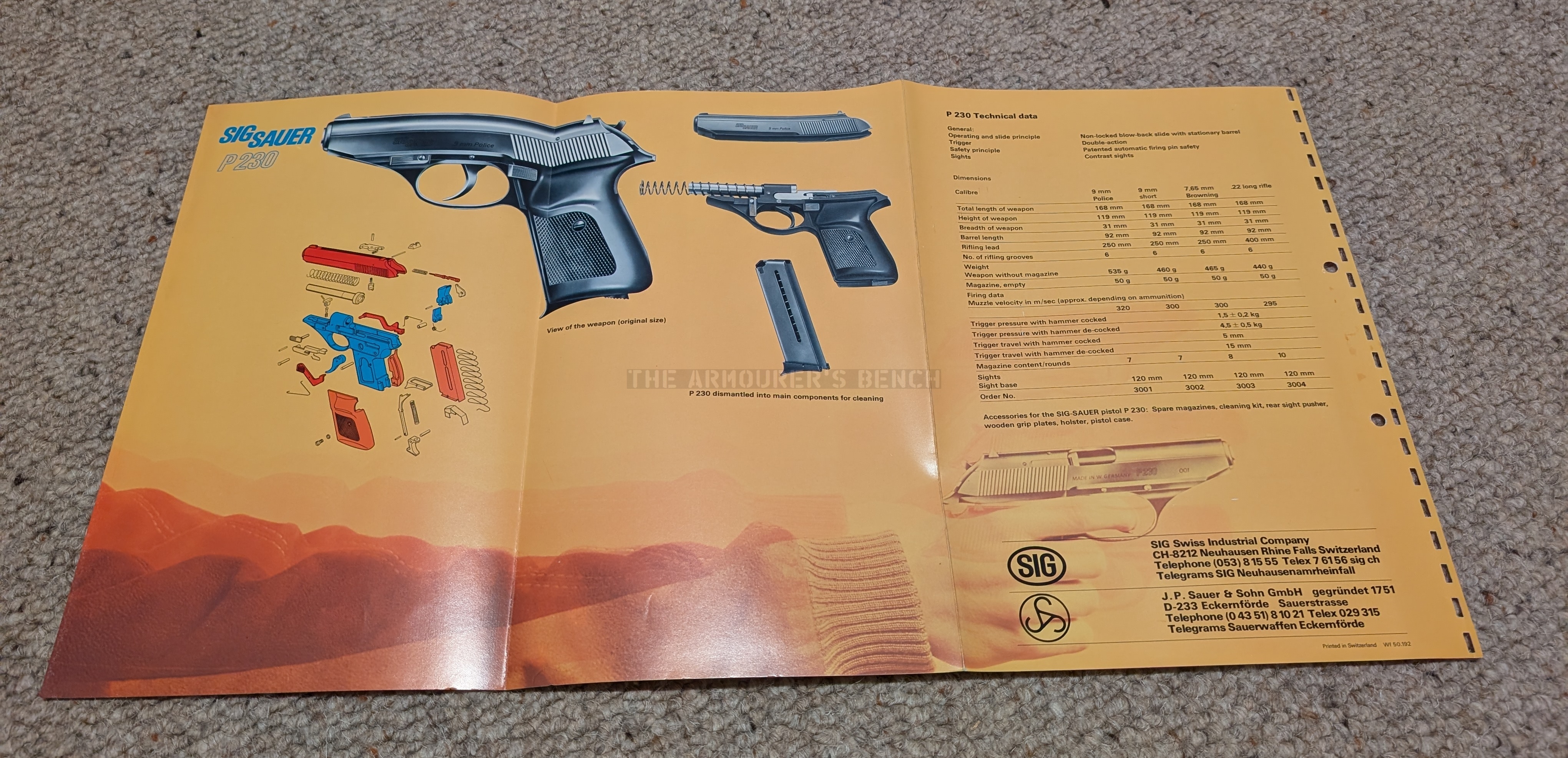 POV – You’re just back from an exciting day walking around the 1989 Arms Expo. You begin unpacking all of the brochures about the latest cutting edge firearms that you picked up! You start with some SIG brochures a nice man from Bern enthusiastically gave you….