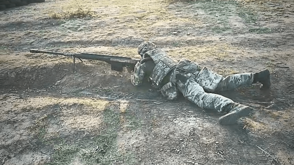 The earliest photograph of one of the guns I could find in 2023 was shared by a Ukrainian combatant in mid-July. Several months later, in September 2023, another Ukrainian combatant shared a photograph of himself holding up a Monomakh at a range. The same combatant also shared a short clip of himself firing the rifle, again at the range. In the clip he appears to be firing the rifle without sights or an optic. He is also seen helping the bolt into battery after each shot, the bushing which guides the barrel as it recoils into the receiver appears to have come loose. The rifles are typically paired with substantial optics, Snipex offer two of their own 6–24×56 scopes, the Jove 50 and the Galaxy G50. In late October, a female sniper with the 3rd Shock Brigade, posted several photographs and a video of herself firing a Monomakh from a position inside a building.