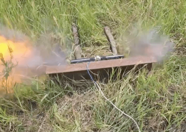 In the video the engineer exclaims that ‘both ways [fired] just fine’ with the grass in front of both barrels clearly impacted by the test. It’s unclear what kind of shot the recoilless gun is designed to use likely a buckshot-style round able to spread on leaving the barrel and sufficiently damage a drone to down it.