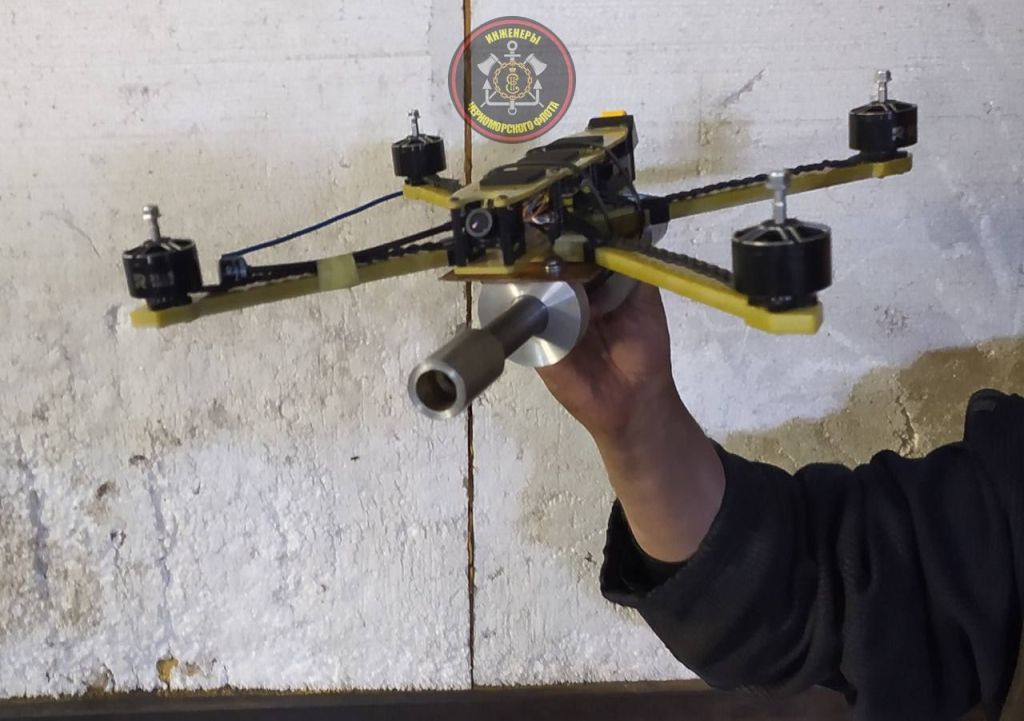 On 6 March a Russian Telegram channel, affiliated with the engineers of the Russian Black Sea Fleet, shared test footage and photographs of a new gun system which can be mounted on small drones. The Telegram post highlights that the system uses the recoilless principle to mitigate recoil and it reportedly utilises standard 12 and 16 gauge shotgun cartridges. It is claimed that it has an effective engagement out to 20 metres and that the aiming of the gun is done through the standard drone camera. The post also claims that operators can “you can hang from 2 to 4 barrels on the drone.” The size and power of the drone would likely have to be greater than a standard Mavic or Russian FPV to mount more than one or two barrels and greater payload reduces range. The post includes a photograph of the barrel assembly on a scale reading 700.9g. (1.5lbs) but a video caption notes when loaded the weight is closer to 780g.