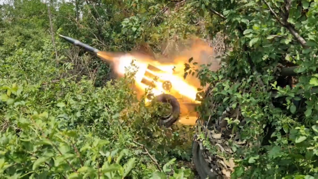 Russian Channel One correspondent Dmitry Kulko shared footage of a Type 75 in action on the 25 June. In his post Kulko notes that the weapon system has a range of 8.5km and is being used with high explosive fragmentation rockets.