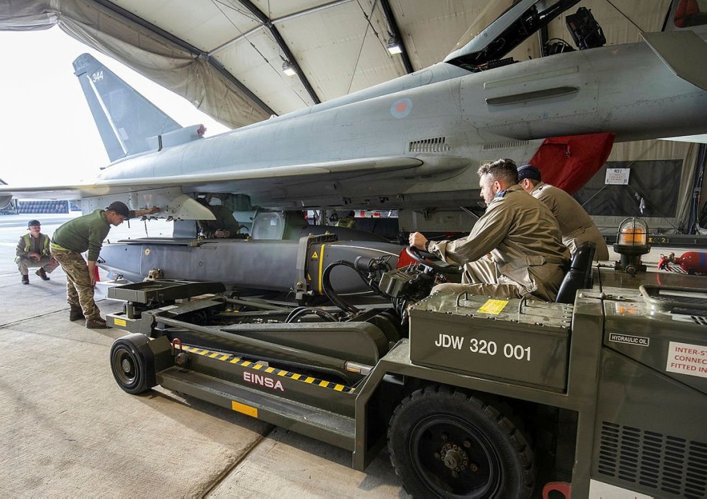 RAF technicians arm a Typhoon with Storm Shadow, 2021 (Cpl Steve Buckley/UK MOD Crown copyright)