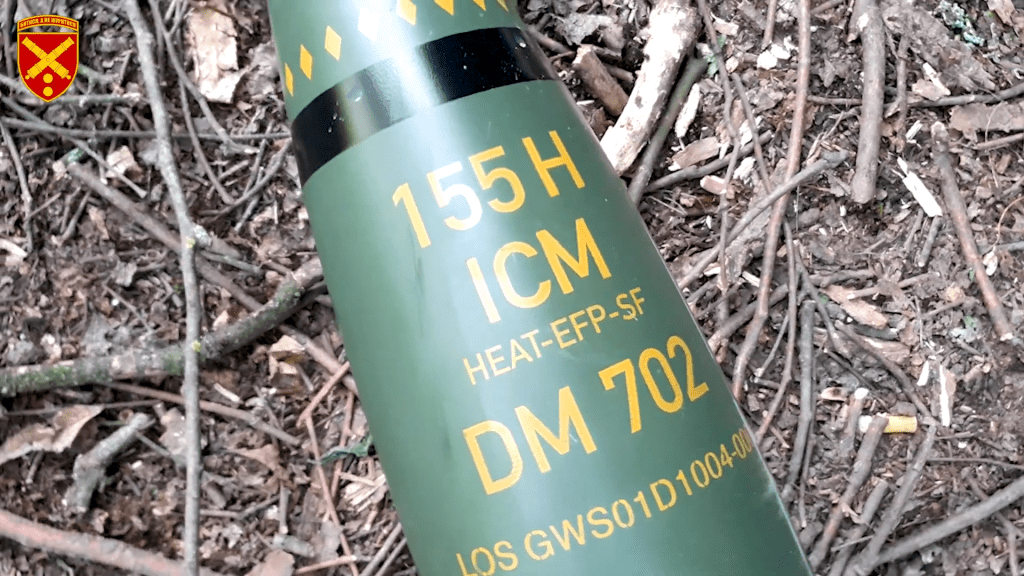 A DM702 shell seen briefly in a video posted by the 43 Separate Artillery Brigade, 16 May (via social media)
