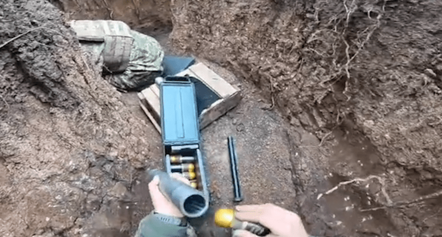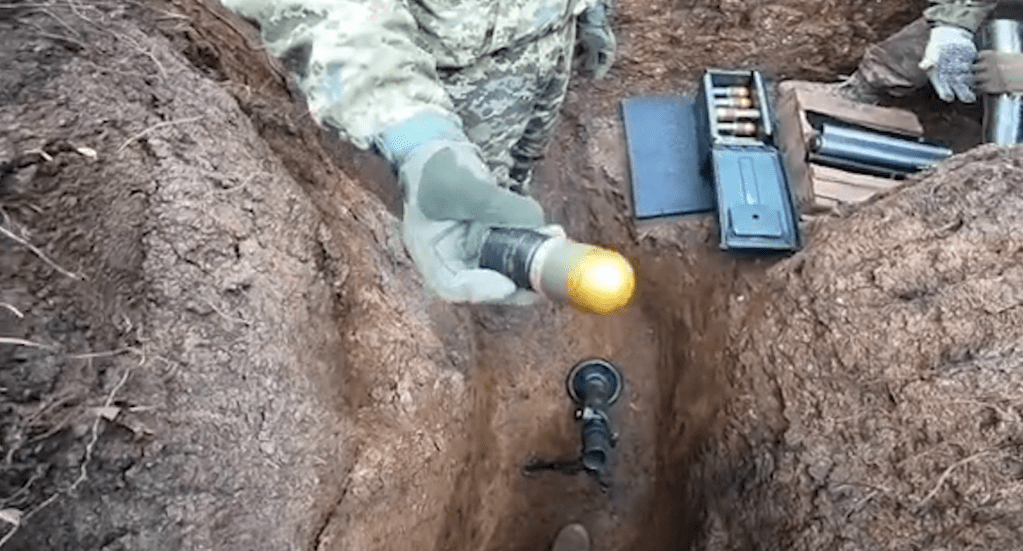 Update – 17/8/24: A new sighting of the 40mm grenade mortar showing some of the loading and firing steps.