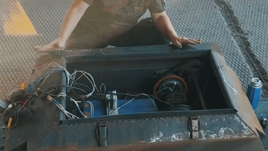 A look inside a Russian tracked drone showing Hoverboard components inside (via social media)