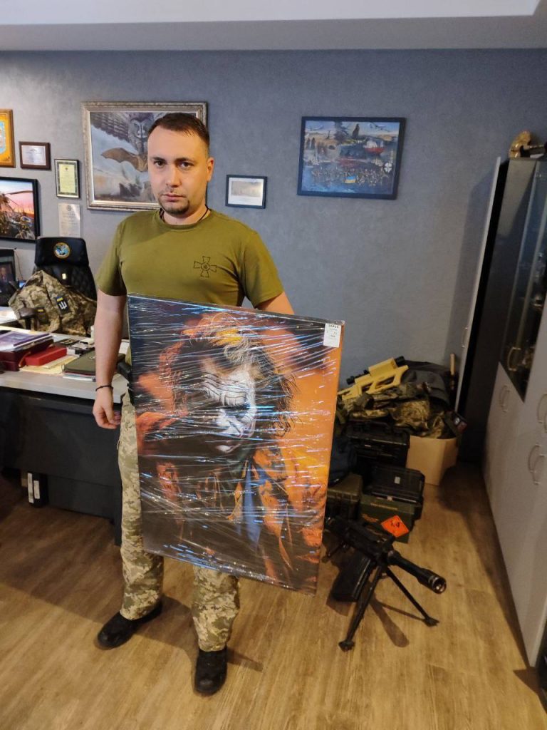Gen. Budanov poses with Joker paining next to an RG-1 (via social media)